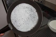 フライパンを回して、粉の液体を全体に流す。 |