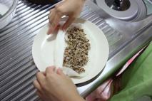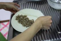 皮の1/3手前のところに具を乗せる。 |