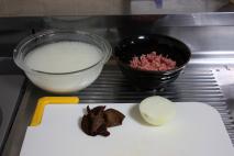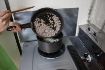 | 1. | フライパンに水、ヌクマム、コショウを入れる。 沸騰したら、ひき肉を入れて、水分がなくなるまで炒める。 |