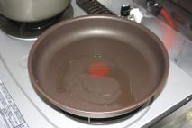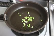 フライパンに細ネギの白い部分を入れて、中火で炒める。 |