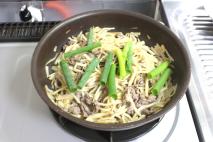 牛肉を入れて、塩(分量外)で味を調える。 |