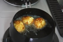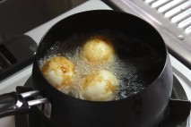 あげる途中、卵を回して、全体的に色がつくように揚げる。 |