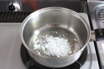 お鍋に砂糖を入れて、中火にかける。 |