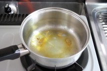 油はてんぷらと同じくらいの量を鍋に入れる。 油が高い温度になる前に卵を入れる。 |